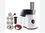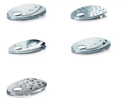 شرکت هلندی فیلیپس برای این سالاد ساز 5 دیسک مختلف در نظر گرفته است که روی صفحه پلاستیکی مخصوص سوار میشوند. از این بین دو دیسک برش دهنده با سایزهای 1.2 و 2.4 میلی متر برای برش دادن مواد غذایی گوناگون از انواع صیفیجات گرفته تا سوسیس در نظر گرفته شده است که میتوان با توجه به سلیقه و برای ایجاد برشهای نازک و کلفت آنها را انتخاب نمود. دو دیسک بعدی قرار گرفته در بسته بندی این محصول دیسکهای رنده هستند که دارای سایزهای 1 و 2 میلی متری میباشند. همانند دیسکهای برش دهنده از این دیسکها هم میتوان برای رنده نمودن مواد غذایی گوناگون با دو سایز ریز و درشت با توجه به سلیقه استفاده نمود. پنجمین دیسک قرار گرفته در این مجموعه یک دیسک 2.8 میلیمتری است که جهت خلال کردن مواد غذایی گوناگون قابل استفاده است. علاوه بر این پنج دیسک که روی صفحه پلاستیکی قرمز رنگ قرار میگیرند یک دیسک ویژه هم جهت خرد کردن سیب زمینی برای تهیه سیب زمینی سرخ کرده به همراه این محصول عرضه میشود که در نوع خود بسیار جذاب است. با کمک این دیسک میتوان در مدت زمانی کوتاه مقدار زیادی سیب زمینی خرد شده در ابعادی یکسان جهت سرخ کردن را تهیه نمود. تمامی این دیسکها از استیل ضد زنگ تهیه شدهاند و در ترکیب با موتور 200 واتی دستگاه به راحتی میتوانند از پس خرد و رنده کردن انواع و اقسام مواد غذایی برآیند. برای شستشوی این دیسکها و همچنین اجزای دیگر به غیر از بدنه اصلی میتوان از ماشین ظرف شویی استفاده کرد و این قطعات مشکلی از بابت قرار گرفتن در سبد ماشین ظرف شویی ندارند.